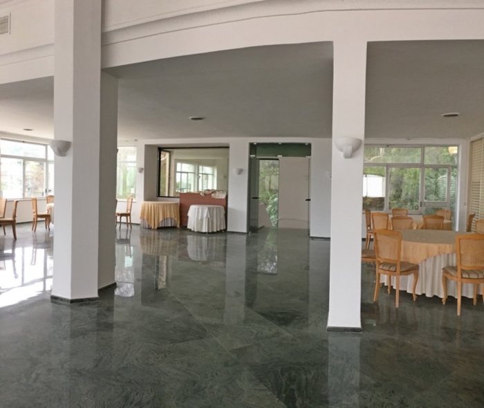 | LUMINOSA SALA RICEVIMENTI CON ANNESSI GIARDINI, PARCHEGGIO E PINETA PRIVATA CON FRONTE MARE |