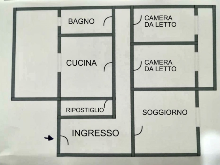 | Nei pressi di via San F.d'Assisi vendesi appartamento al primo piano composto da ingresso, corridoio, soggiorno, cucina abitabile con veranda, due camere da letto, bagno e ripostiglio. |